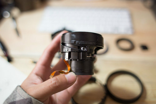 ↓现在镜筒上能看到三个横向的滑道。拆了白色的塑料片前组就能拿下来了。