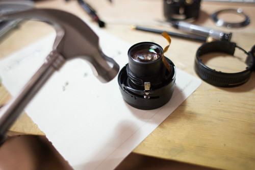 ↓解决办法很简单就是......哐哐哐.....砸回去(好吧,这看起来确实不大像在修镜头)。