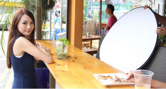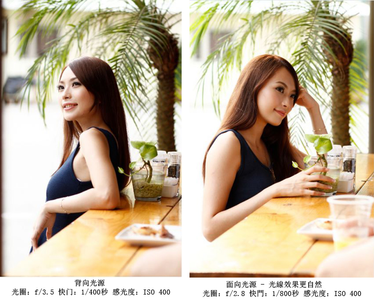 除面向光源外,亦可利用反光板替模特补光,让相片的光暗对比更自然。