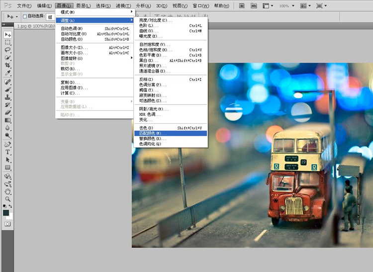 然后,回到想调节的照片,再打开图像>调整>匹配颜色。