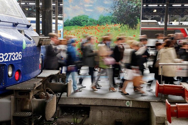 法国巴黎。巴黎Gare Saint-Lazare火车站上的通勤者。