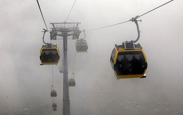 玻利维亚拉巴斯。这座全世界最高的缆车系统每天在13英尺的高空运送往返于拉巴斯和附近几座城市的通勤者。
