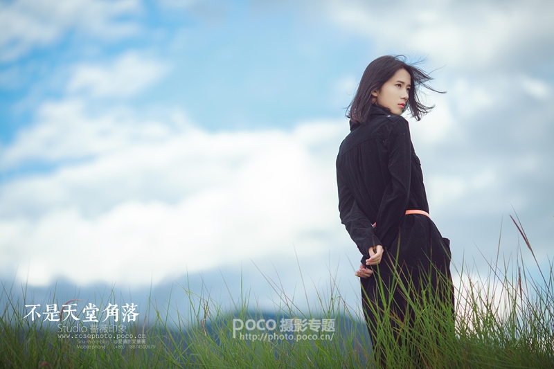 丽江天堂角落。现场时而有风吹过,吹乱模特的头发,让她随手做点摘草的小动作再整理下被吹乱的头发,这时候果断按下快门,画面简单自然。