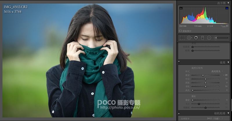 用效果栏目里的“裁剪后暗角”加入暗角