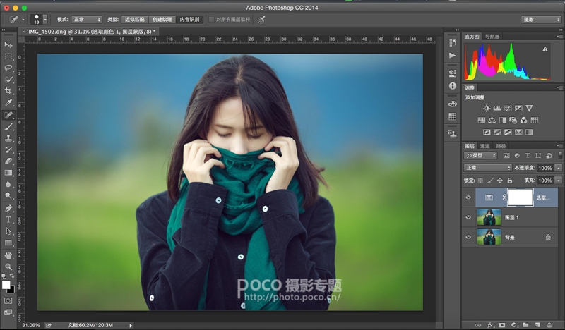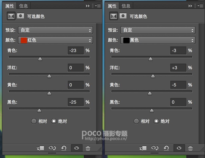 接下来建立可选颜色调整层做适当调色。选绝对,红色里减青使肤色红润,减黑用以提亮红色目的为了肤色美白。黑色里面减青加洋红减黄,让黑色头发与服装有轻微的淡紫色和幽蓝(个人喜好而已)。