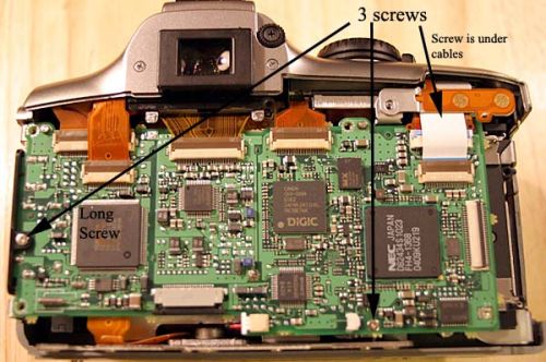 拧掉图中所示的三个螺丝,其中左边的一个较长。