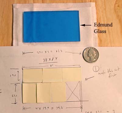 Edmunds玻璃的长宽比例为84mm×48mm×3mm。而EOS 300D的红外滤镜大小为27mm×19.6mm×2.7mm。