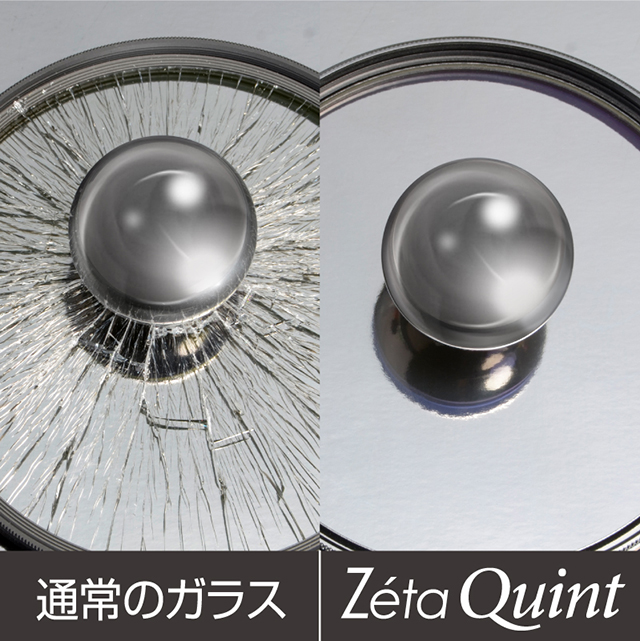 肯高于2014年CP+大会(2月)展示过首款Zeta Quint产品,相比目前的Zeta系列,Zeta Quint具备更加强悍的抗冲击、耐污性能。其产品名称中的“Quint”来源于拉丁语,意为“五胞胎”或“五个一组”,表明其经过了五重加工技术:玻璃强化、硬铝镜框、防尘防水、超低反射ZR镀膜以及镜片边缘消光处理。同时Zeta Quint也是肯高首款采用硬铝镜框的超薄滤镜产品。