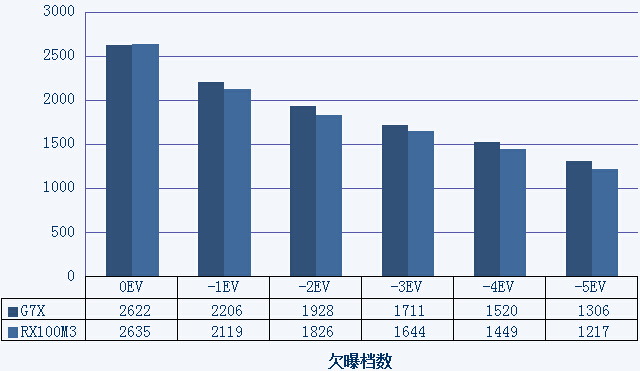 同样采用ISO12233标板、德塔灰卡和漫射光源等同单反/无反相机相同的测试条件来进行测试。由于这两台相机均无法更换镜头,在测试感光度表现时我们采用了G7 X的70mm端和RX100M3的50mm端这两个变焦镜头的中间焦段,来尽可能使得镜头不成为传感器性能的瓶颈。测评时均采用各自的最佳光圈,评判标准和单反相机相同。