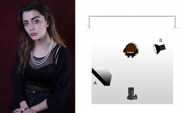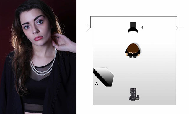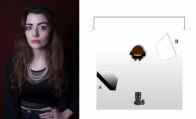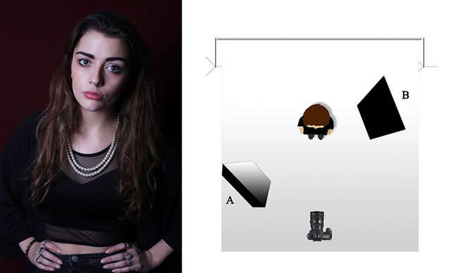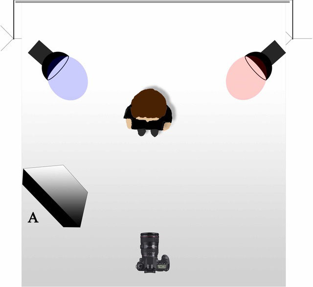 A:柔光灯,B:黑色反光板