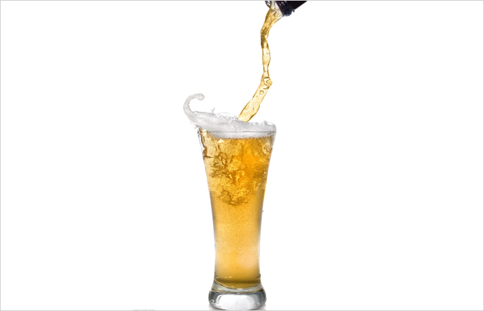 5、透明液体 在玻璃器皿中倒入液体,如红酒、啤酒、橙汁等,用投射布光的方法可以提高液体的色饱和度,从而获得浓艳的色彩效果。这些液体有的比较清透,有的比较厚浊,需要表现出他们各自不同的质地。如果盛装的器皿粗大或玻璃壁较厚了,啤酒要比橙汁清澈多了。