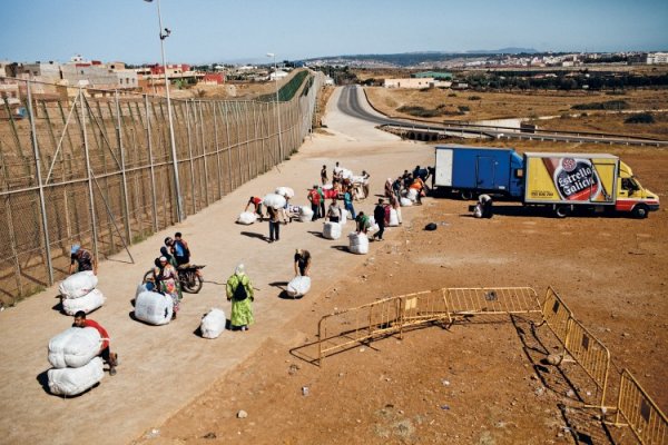 每天在摩洛哥和西班牙北非飞地城市休达/梅利利亚之间的边防有数千名像她一样的女性在排队等候,她们用自己的双脚将数百万欧元的货物驼过边境,边境两遍的商人都赚得盆满钵满。