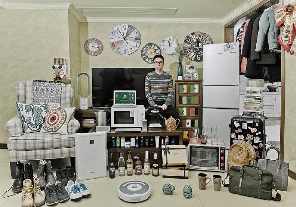 黄庆军让他的每位拍摄对象与他们网购过的东西合影。照片让我们看到网购对人们生活的深远影响。