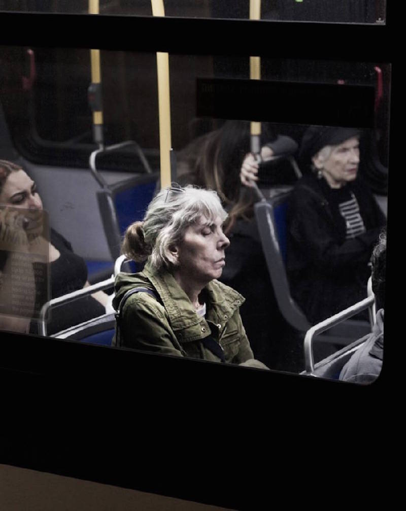 疲惫的面容,呆滞的神情,焦急的等待,摄影师Travis Huggett在夜晚来到纽约的公交车站,拍摄那些晚归的人们在车上的样子。没人知道这些人来自哪里,又要去哪里,他们这一天经历了什么,快乐或悲伤,观者所看到的只是车窗玻璃中那一张张没有什么表情的面孔。