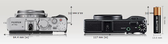 X70重约340g*2,是X系列中配置APS-C尺寸传感器的最轻便的机型。顶罩装有由打磨铝制成的曝光补偿和快门速度转盘,方便用户快速访问主要功能,同时光圈和对焦环也采用打磨铝材质,以减轻机身重量。光圈可以1/3或1档为增量进行调节;此外,对焦环也可用作控制环,以快速访问各种功能。
