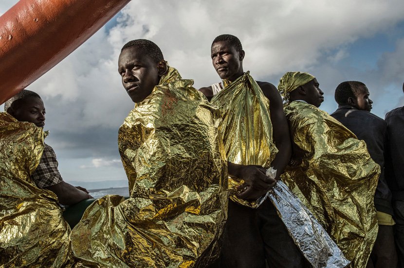 简介:无国界医生在西西里海峡的救援行动,难民们在船上裹着保暖用的毯子。