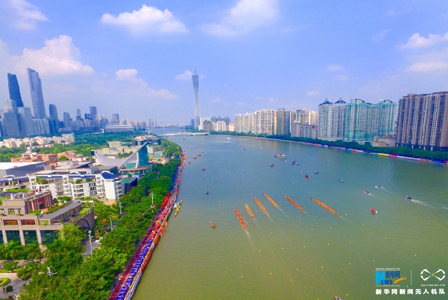 航拍广州国际龙舟邀请赛 约5000运动员竞渡珠江