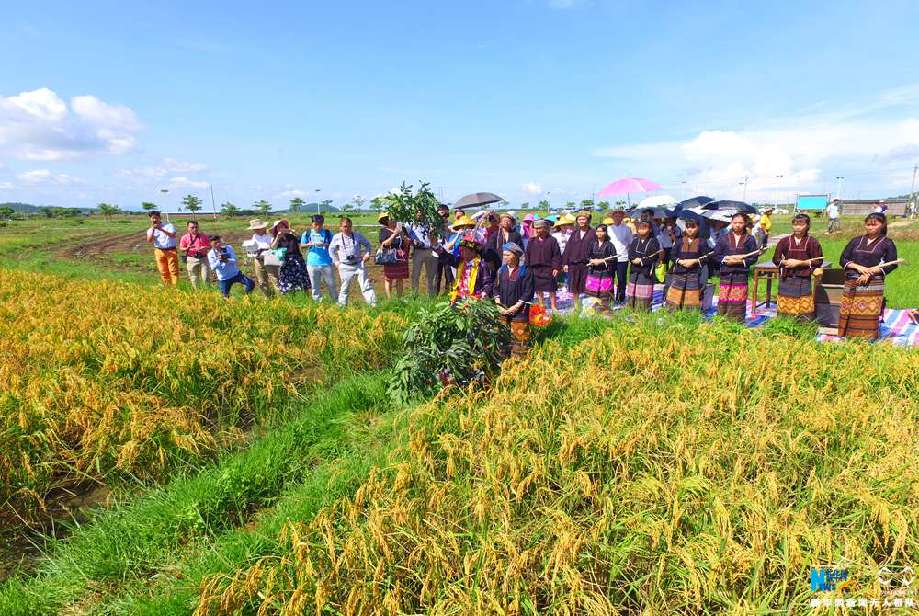 海南省昌江黎族自治县村民举行割稻“开镰”仪式。新华网 黎多江摄