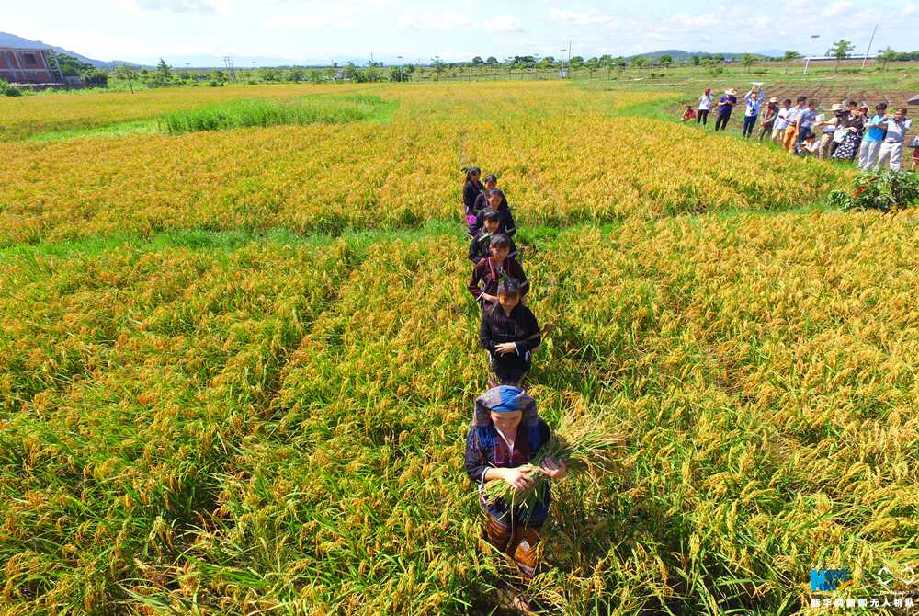 航拍海南昌江割稻“开镰”祈五谷丰登