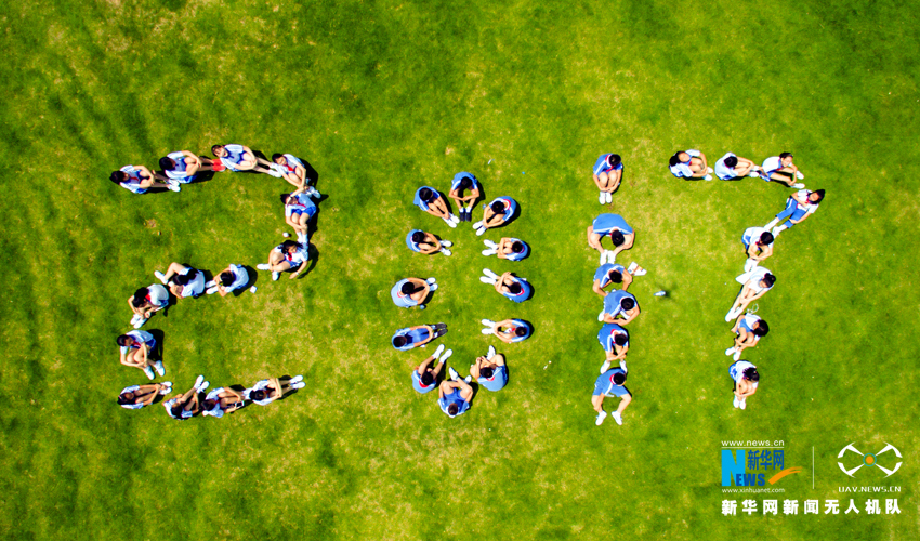 图为深圳湾小学一个毕业班的孩子们在深圳湾日出广场拍摄毕业照。新华网发 龙彪摄