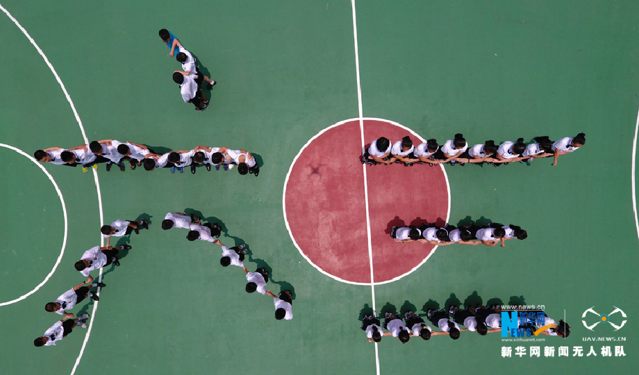 毕业前夕,广州市天河区前进小学,一个毕业班的学生在校园篮球场上拍摄毕业照。新华网发 凌志摄