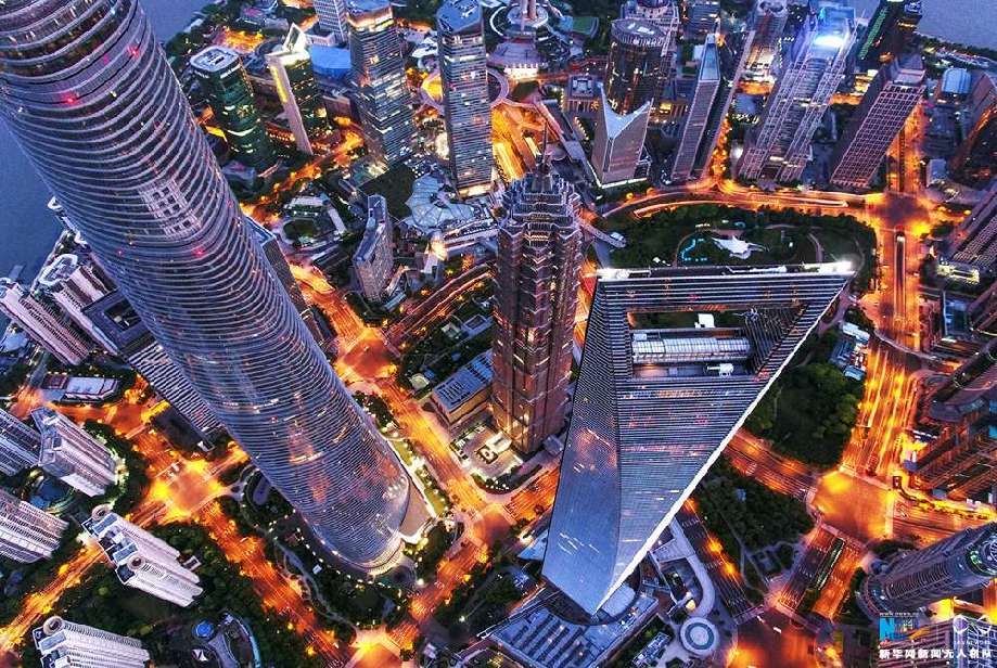 图为无人机航拍上海繁华中心迷人夜景,车水马龙,夜如白昼。新华网发 王正坤 摄