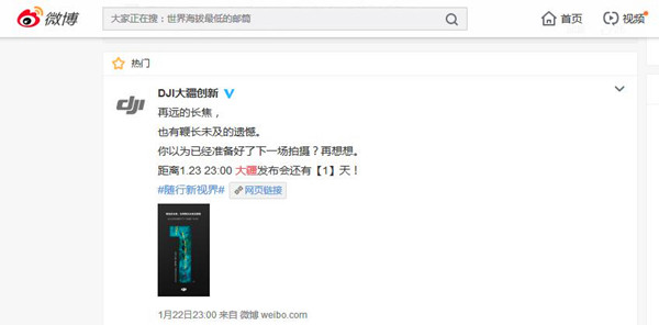 来自大疆官网的公告,大疆创新将于1月23日在纽约举行主题为“Adventure Unfolds”的活动。据了解,大疆目前跟“Adventure”挂的上钩的户外便携无人机是Mavic Pro,那么很有可能,大疆会在23日23:00带来新的Mavic 系列的无人机。