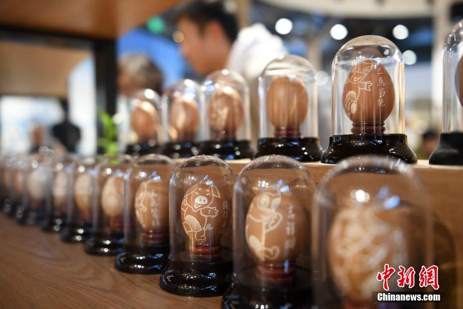 ??????????????????????????????????? 董师傅的精美蛋雕作品吸引了不少顾客的眼球。 中新社记者 王远 摄