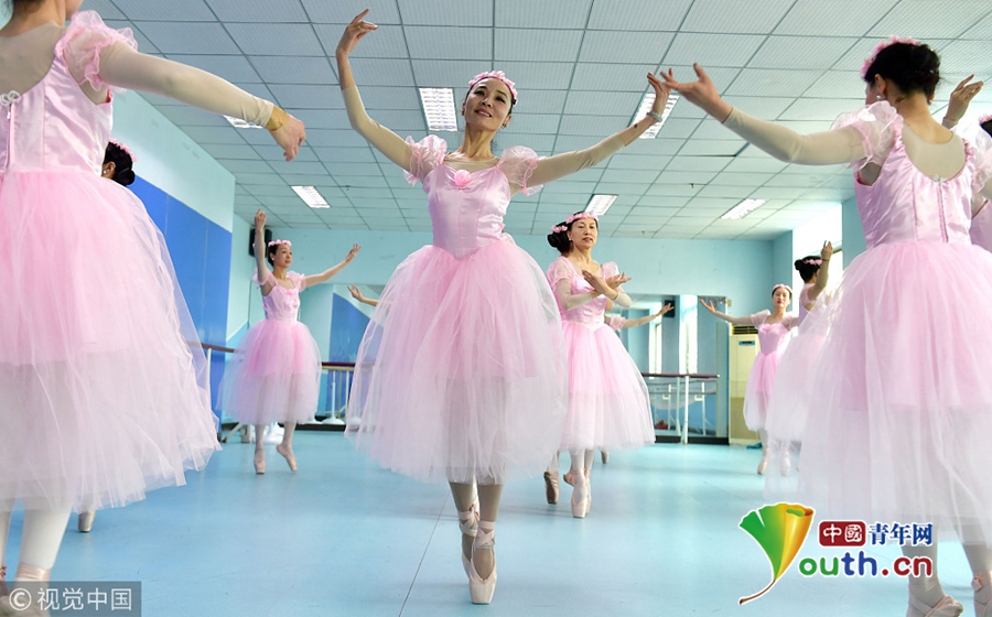 团长杜幼玲也已经60岁,她从小喜欢芭蕾,在那个样板戏流行的年代,《白毛女》《红色娘子军》里的芭蕾舞蹈让女孩子们憧憬不已,她也曾在家里尝试踮着脚尖模仿,但由于条件限制并没有去学,没想到退休后有了机会?!拔壹依镎展俗帕轿焕先?,每天都很忙碌,但是我真的爱上了芭蕾,安排好家里的事后,我会坚持参加每一次的排练,在这个年龄能跳起芭蕾,我感觉自己很幸福!”