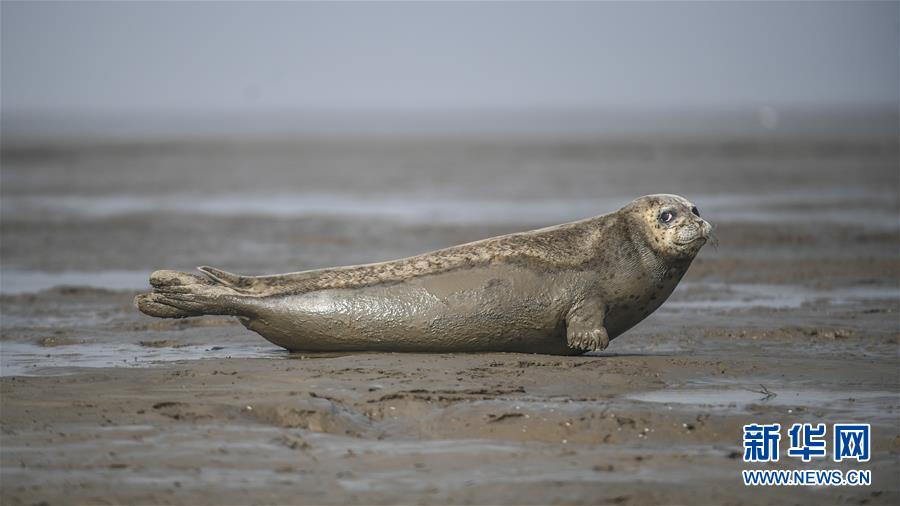 3月25日,一只斑海豹在辽宁盘锦双台河口三道沟海域的滩涂上休息。近日,辽宁盘锦双台河口三道沟海域滩涂上出现大批洄游栖息的斑海豹。据了解,每年2月到5月,成群的斑海豹都会洄游至辽河入海口处活动。目前在双台河口附近海域约有300余头斑海豹,这些斑海豹将在此处海域栖息至5月中旬,随后它们将逐渐离开辽东湾。新华社记者潘昱龙摄