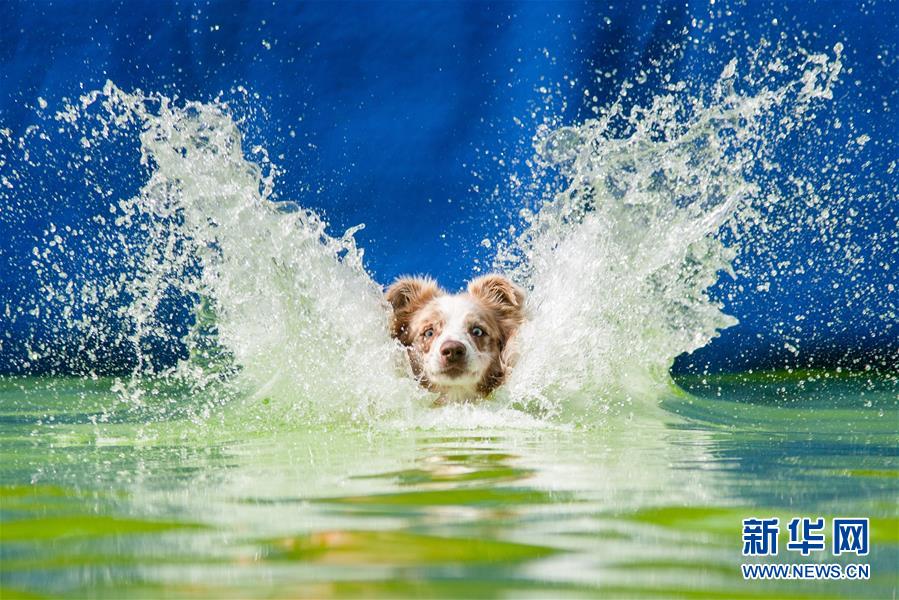 狗年新春将至,为大家展现一组热爱运动的“萌狗”。图为在斯洛文尼亚第二届狗跳水比赛中,一只参加比赛的小狗跳入水中(2016年9月10日摄)。新华社发(卢卡·达克斯科布勒摄)