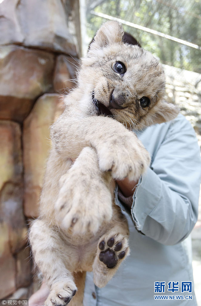 4月17日,在贵州森林野生动物园珍稀动物区,记者见到了5只刚出生的小狮子。(图片来源:视觉中国)