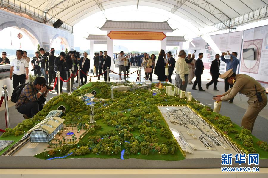 2017年12月21日,在泰国东北部呵叻府巴冲县,人们在中泰铁路合作项目一期工程开工仪式上参观项目沙盘模型。中泰铁路合作项目是泰国第一条标准轨高速铁路,一期工程连接首都曼谷与东北部的呵叻府,全长约253公里。新华社记者李芒茫摄