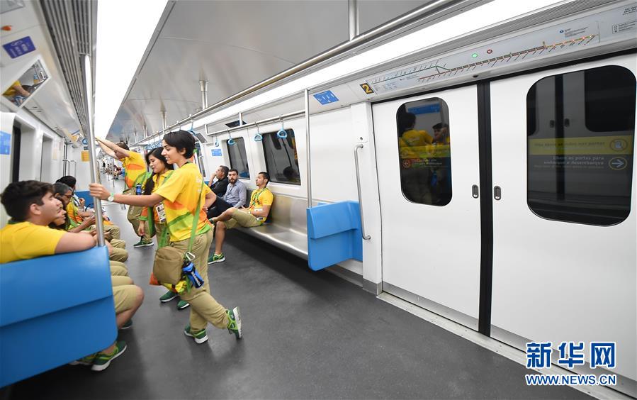 2016年8月1日,奥运会志愿者乘坐巴西里约地铁4号线列车。该线列车均为中国制造。新华社记者王昊飞摄