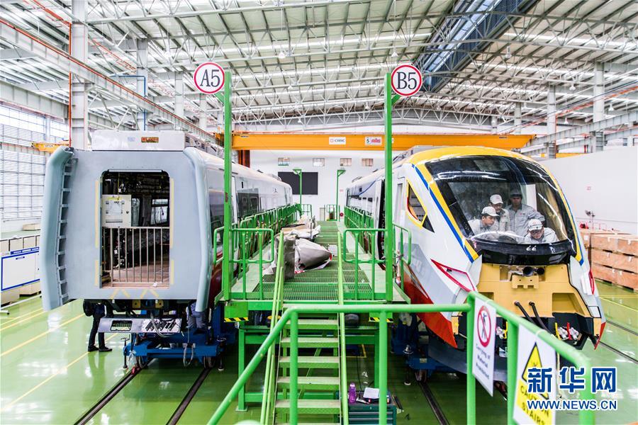 2018年3月27日,在马来西亚中部霹雳州巴都牙也,工人在马来西亚中车轨道交通装备有限公司装配车间工作。马来西亚中车轨道交通装备有限公司是中国铁路装备首个海外制造基地,涵盖生产、组装、测试、维护保养、翻新等业务。新华社记者朱炜摄