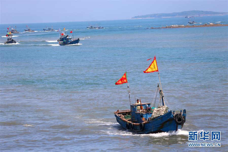 山东即墨市田横岛省级旅游度假区的渔民在伏季休渔期结束后驾船出海(2017年9月1日摄)。新华社发(梁孝鹏 摄)