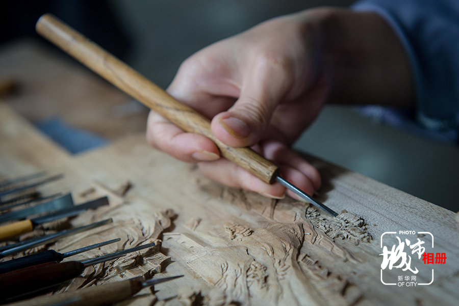 经过修光的步骤,木雕作品雏形初现,因此也会耗费大量的时间。通常,修光的时间,会是打坯的两倍。即便是熟练的工匠,做浅浮雕的修光,每天能完成的工作量,通常不会超过一个巴掌的大小。新华网李相博 摄