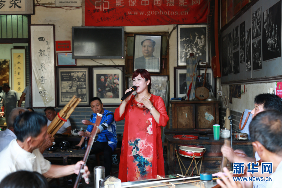 听书说书是茶馆重要文化之一,说的人津津乐道,听的人神情关注,淮北大鼓、坠子戏、泗州戏在此久盛不衰。新华网发(李绪林摄)