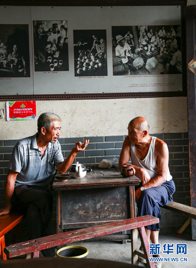 每天天一亮,村民便从四面八方赶来,他们家里几乎不烧水,喝惯了茶馆的茶。一元或者五角一壶,茶水自续,无限量供应,一呆就是大半天。新华网发(李绪林 摄)