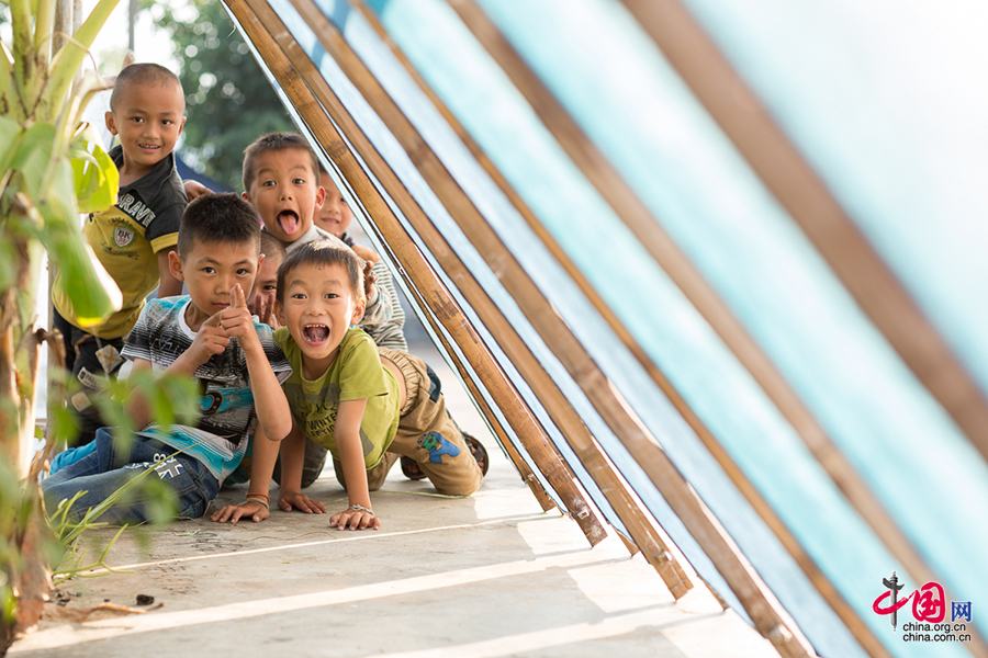 傣纸的晾晒场也成了孩子们嬉戏的乐园,透过傣纸柔和的光线映照着孩子们灿烂的笑容和真诚的脸。图片提供:稀捍行动