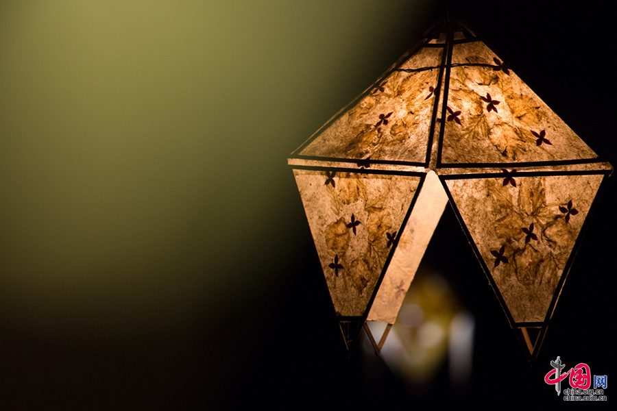 傣纸做成的灯笼。傣纸的发展由最早的单纯为抄写经文衍生出新的用途,纸张也不再只是净面单色,聪明的傣族人民在造纸的过程中通过添加花瓣、变动纤维来造出有花纹的纸张。劳动者的智慧通过这个精致的灯笼传递出来。图片提供:稀捍行动