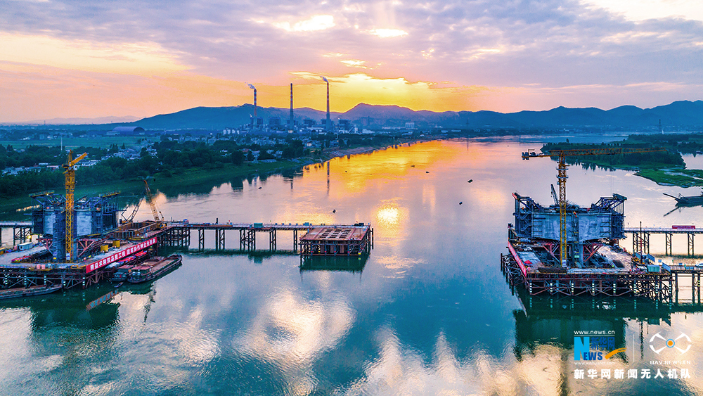 图为2018年5月桥墩施工阶段的郑万高铁襄阳汉江特大桥。新华网发 郭武摄