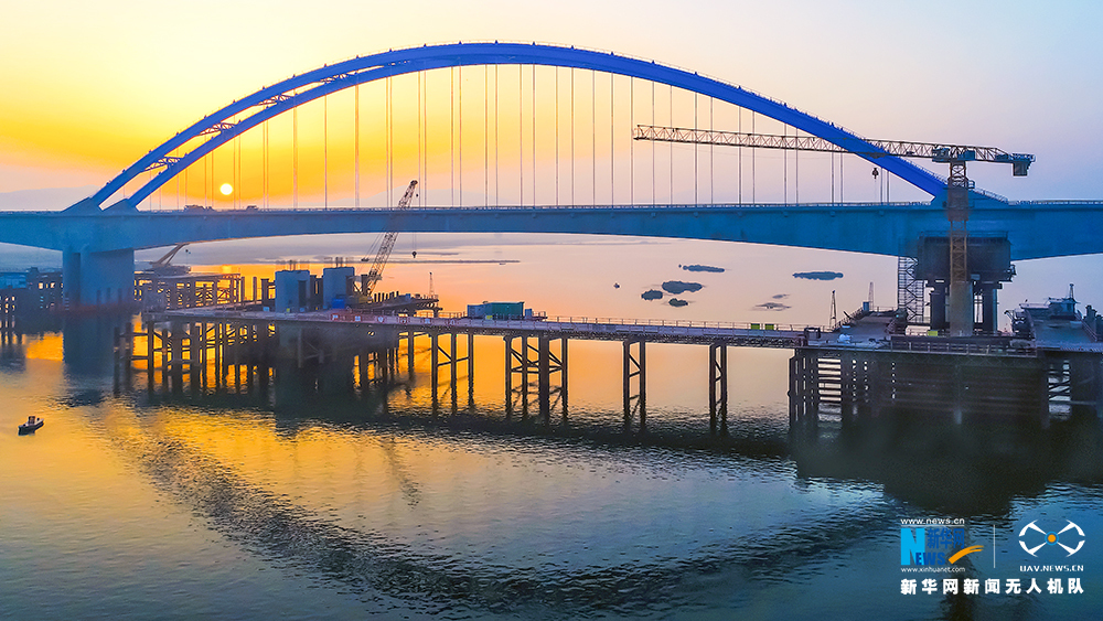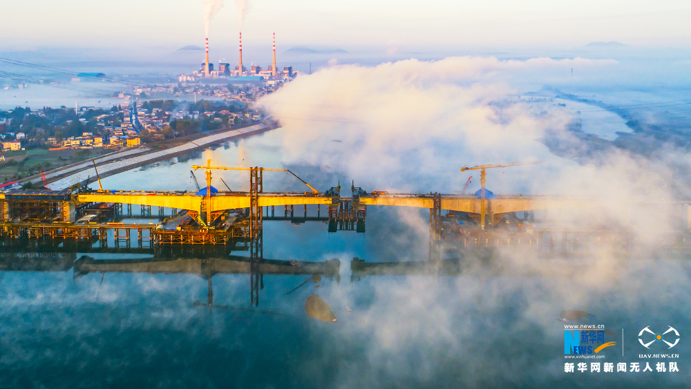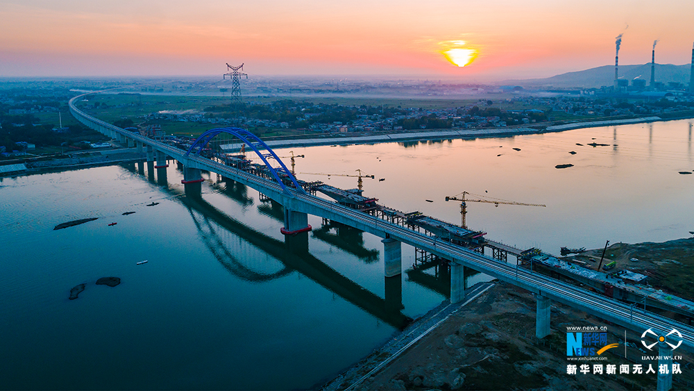 图为2018年11月桥梁即将合拢的郑万高铁襄阳汉江特大桥。新华网发 郭武摄