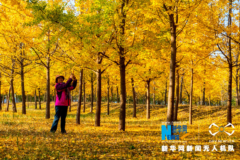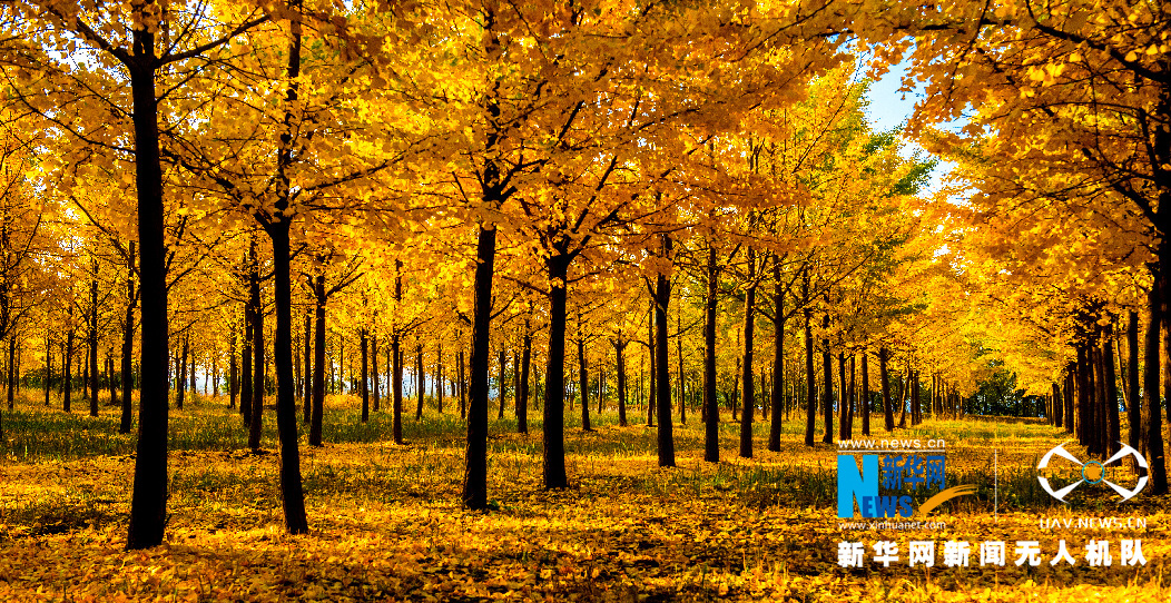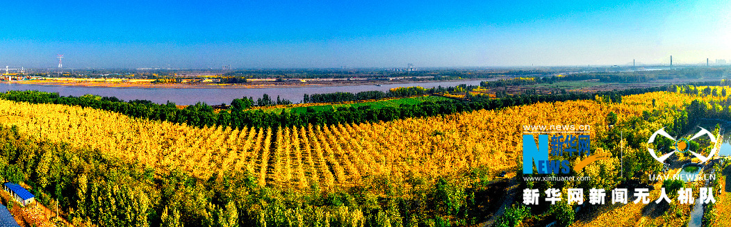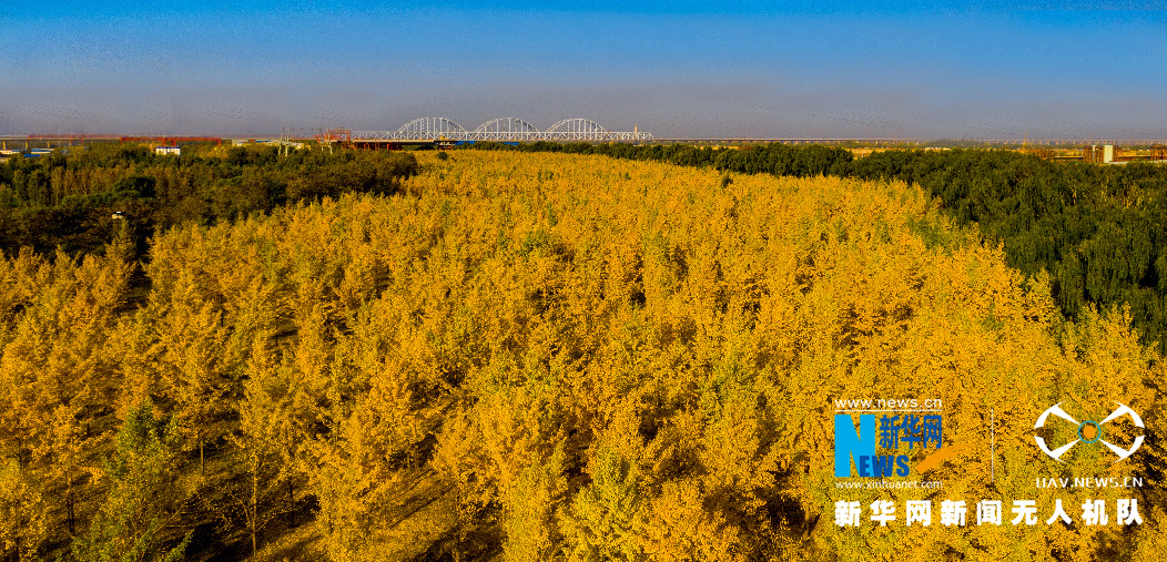 航拍的济南黄河银杏林。新华网发(宋广兴 摄)