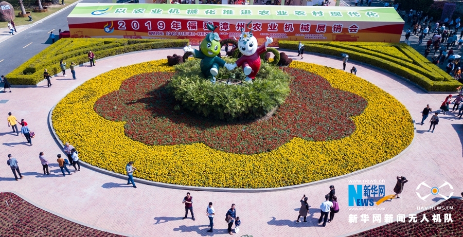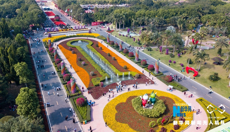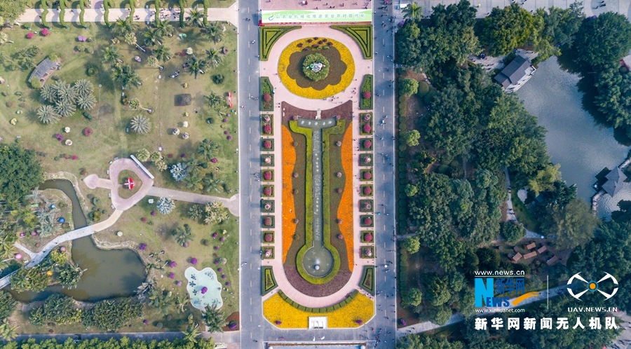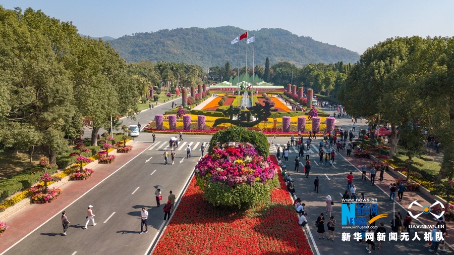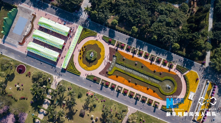 ????这是漳州花博园入口处的巨型花带,各种花卉盛放(无人机拍摄)。新华网 肖和勇 摄