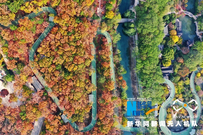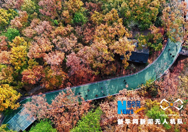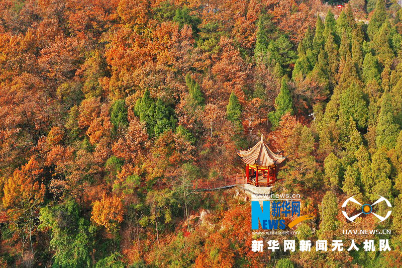 西宝山,位于湖北省荆门市中心城区西部,为荆山余脉。古称西山,亦作西堡山。初冬时节,西宝山层林尽染,风景如画。新华网发彭琦摄