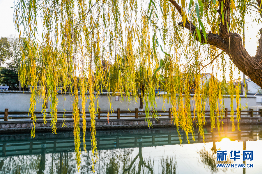 ????垂柳摇曳,暖阳西下,风景如画。新华网吴恺 摄