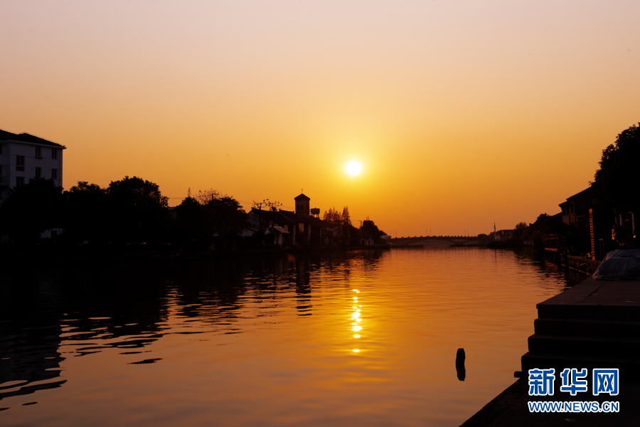 ????傍晚时分,夕阳西照下的水乡透着静美。新华网吴恺 摄