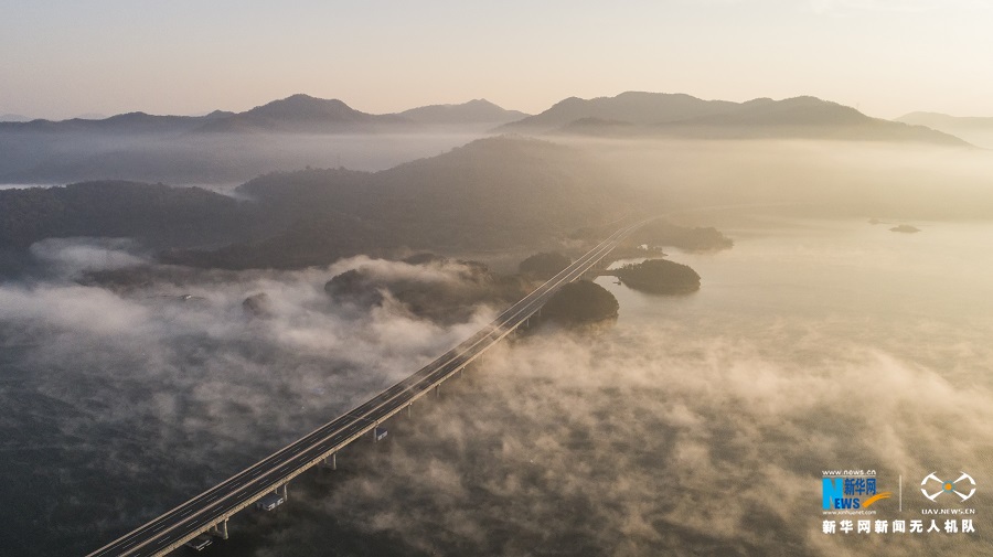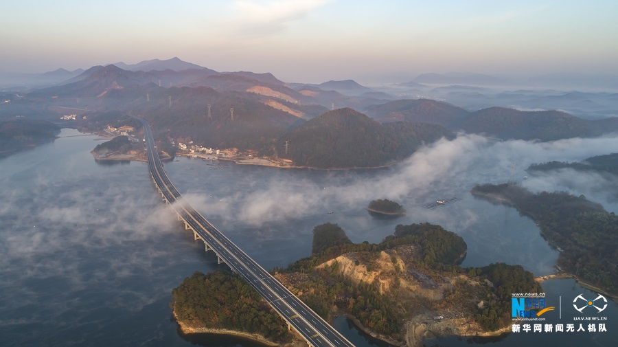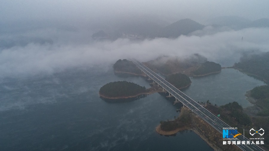 航拍江西“最美水上高速” 云浪翻飞蔚为壮观