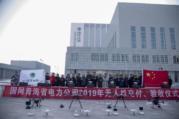 国网青海电力专业人员开展无人机验收试飞交付仪式。德倩美多摄